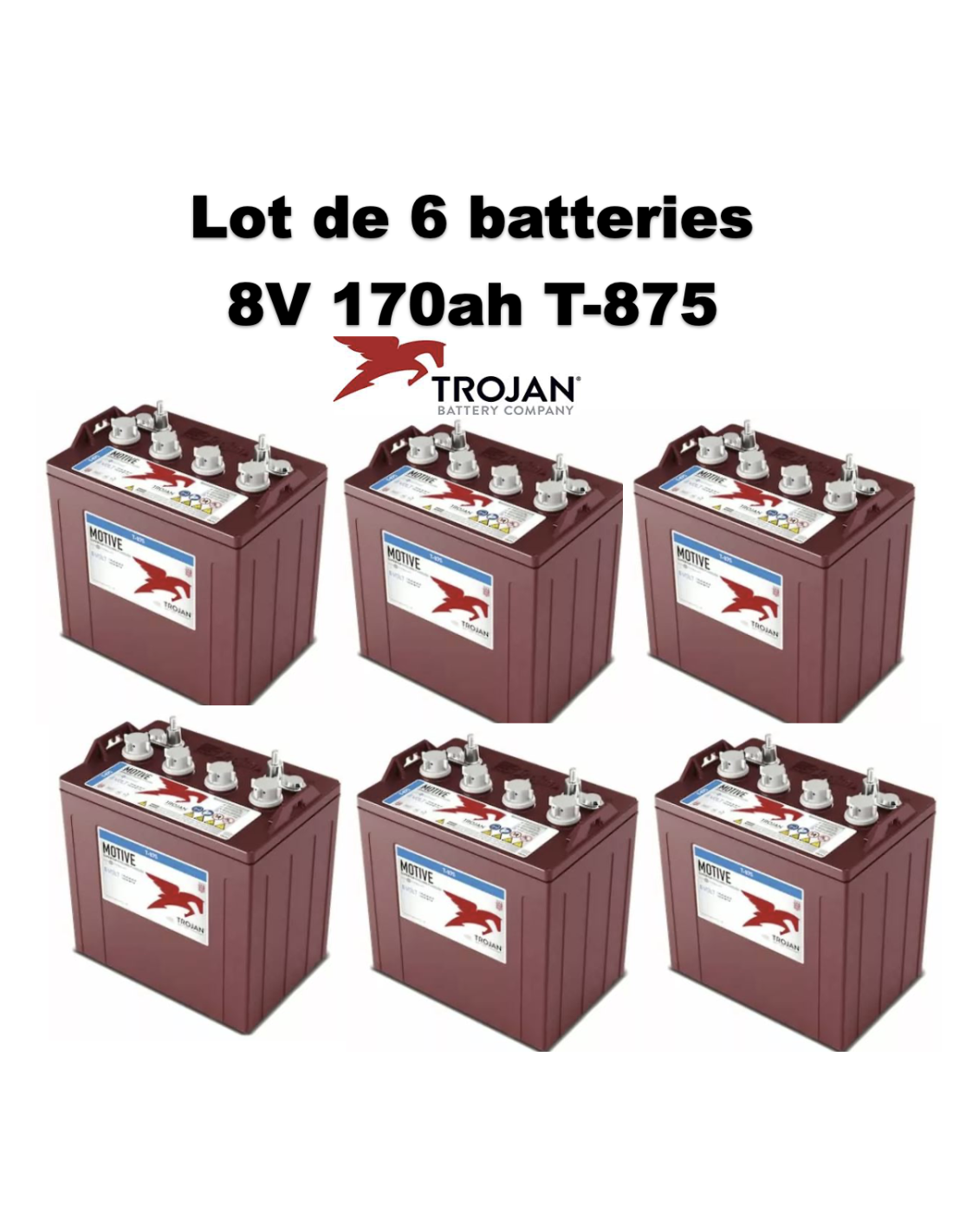 Batterie Trojan T-875en 8V 170ah Deep Cycles pour voiture de golf / golfette, nacelle élévatrice Haulotte