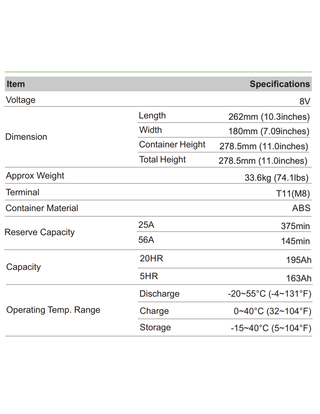 Batterie 8V 195ah Leoch AGM / GEL Carbone LDC8-195