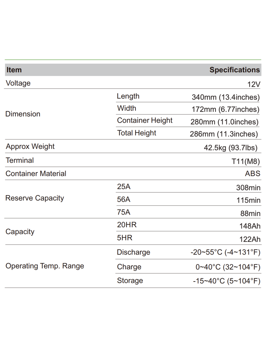 Batterie 12V 148ah c20 ah Leoch AGM / GEL Carbone LDC12-145