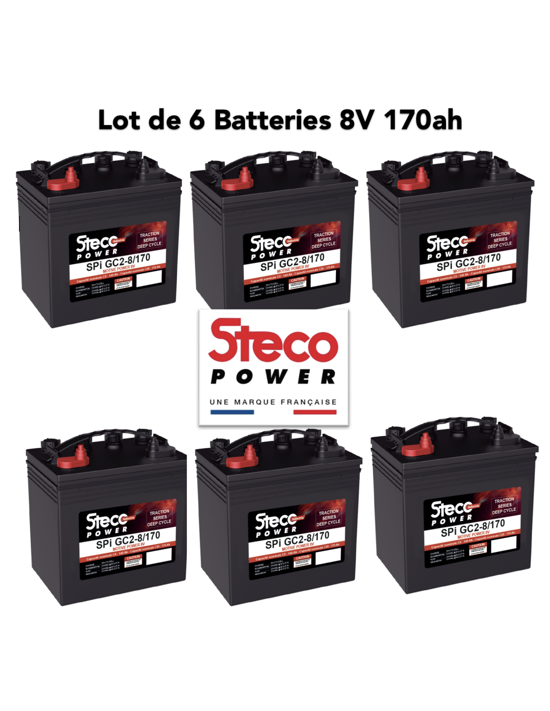 Lot de 6 Batteries Steco 8V 170ah Deep cycles traction 48V