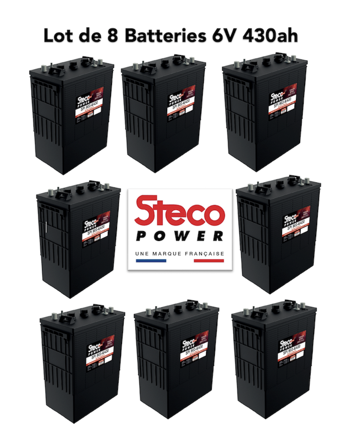 Lot de 8 Batteries Steco Power 6V 430ah Deep Cycles 24v pour nacelle élévatrice, Haulotte, installation solaire, bateau en servitude