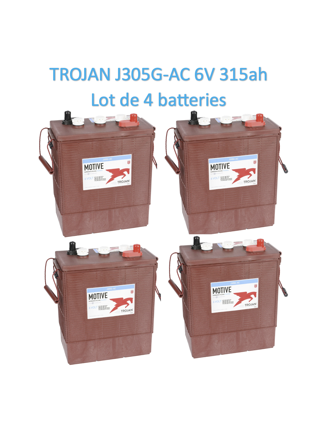 Lot de 4 Batteries Trojan J305G-AC en 6V 315ah Deep Cycles pour, nacelle élévatrice, Haulotte, Chariot