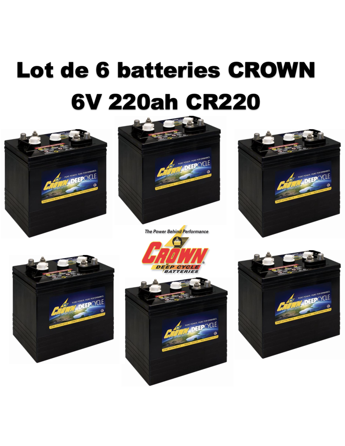 Lot de 6 Batteries Crown 6V 220ah Deep cycles CR220