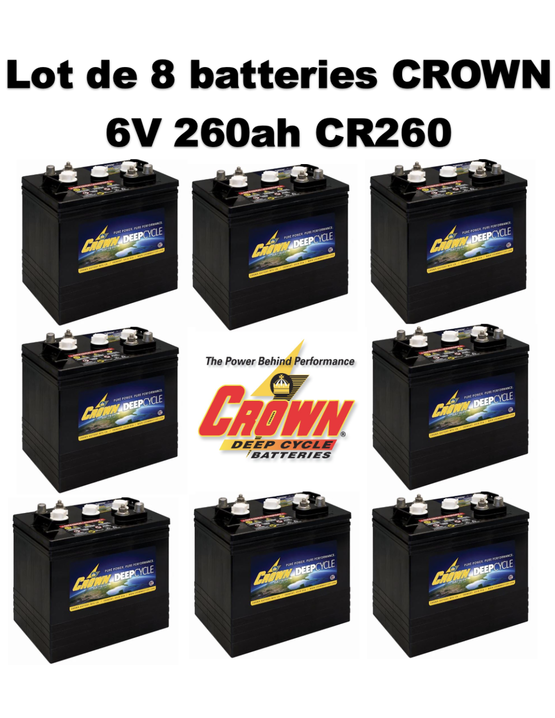 Lot de 8 Batteries Traction Crown en 6V 260ah Deep cycles