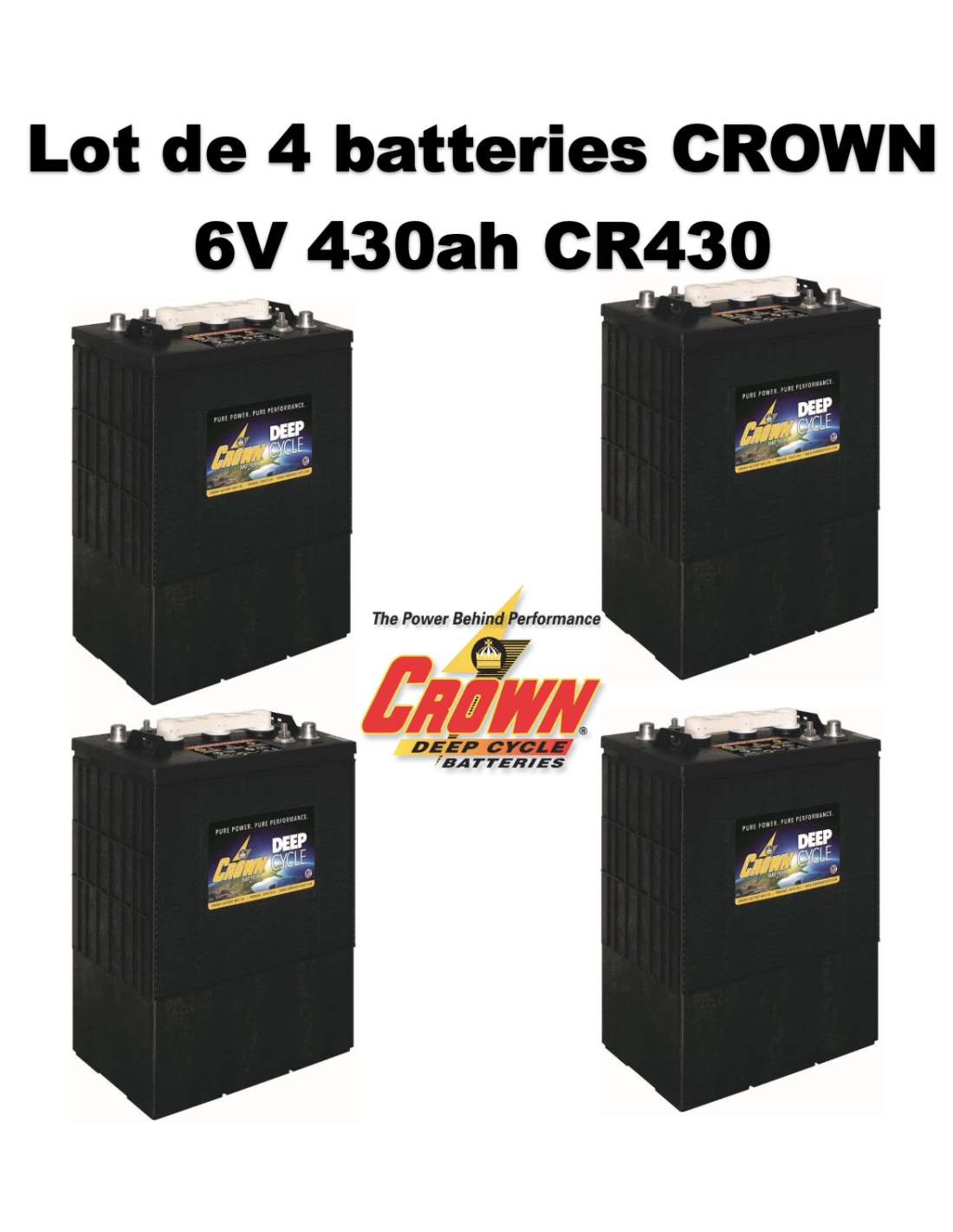 Lot de 4 Batteries Traction Crown en 6V 430ah Deep cycles CR430