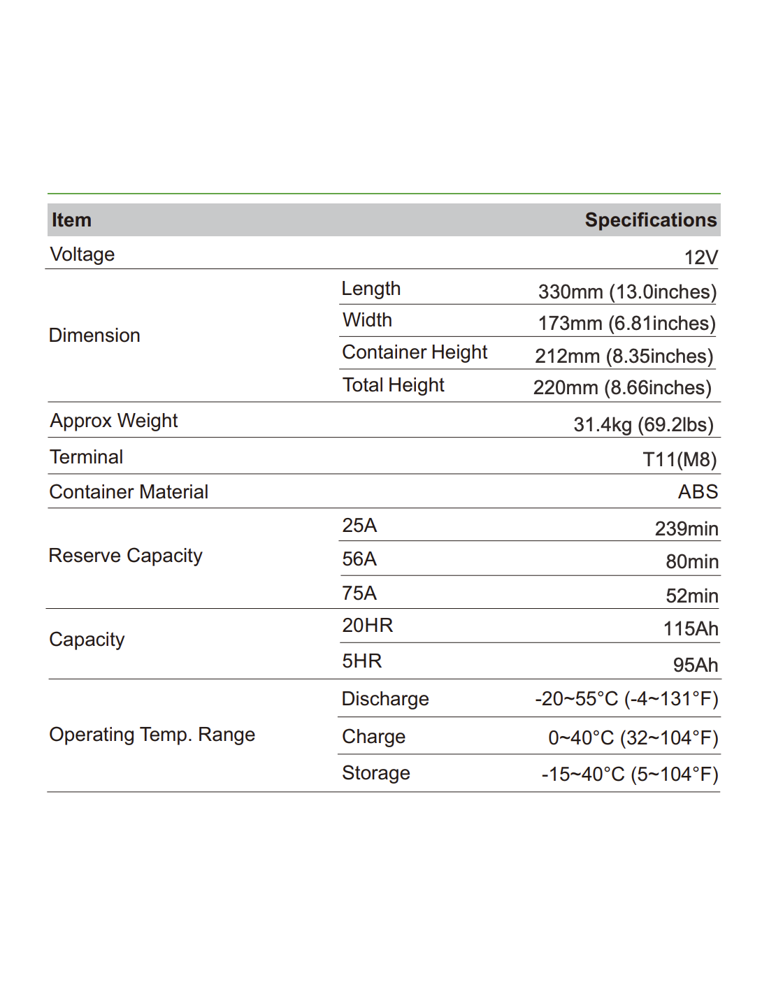 La batterie Leoch LDC12-115 GT31-T est une batterie 12V étanche avec une technologie AGM PLOMB CARBONE, Sans entretien, elle offre une excellente durée de vie en cyclage et performances .