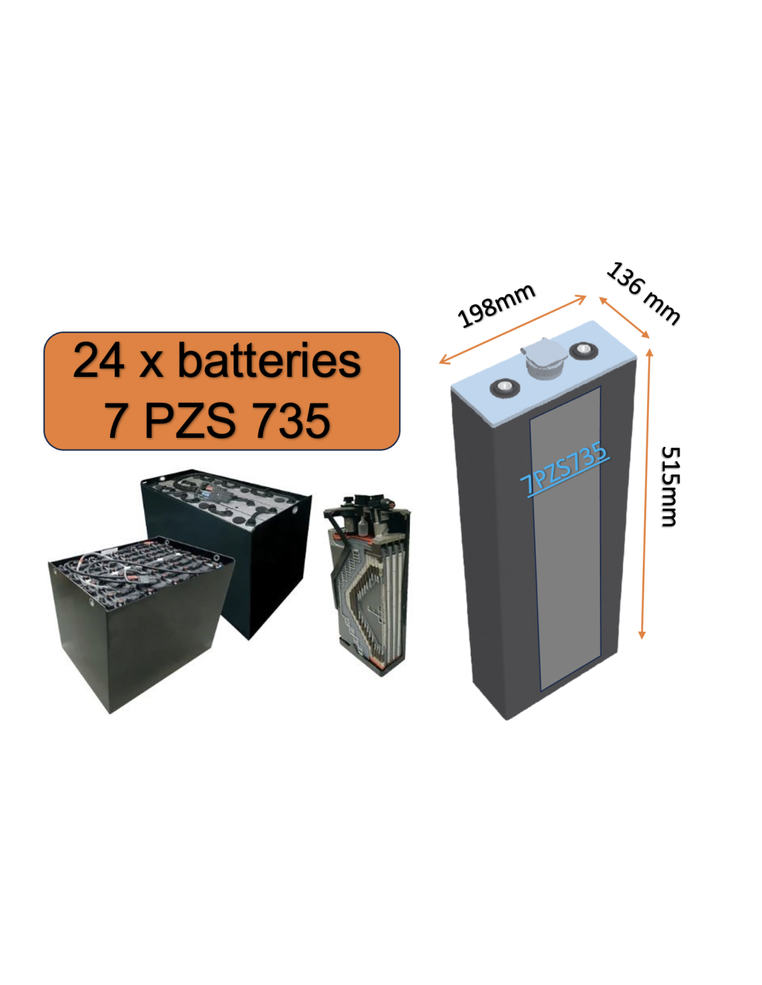 Batterie pour chariot élévateur, transpalette ou gerbeur électrique vendu à l'unité et en pack par 12 / 24 et plus avec un tarif dégressif.