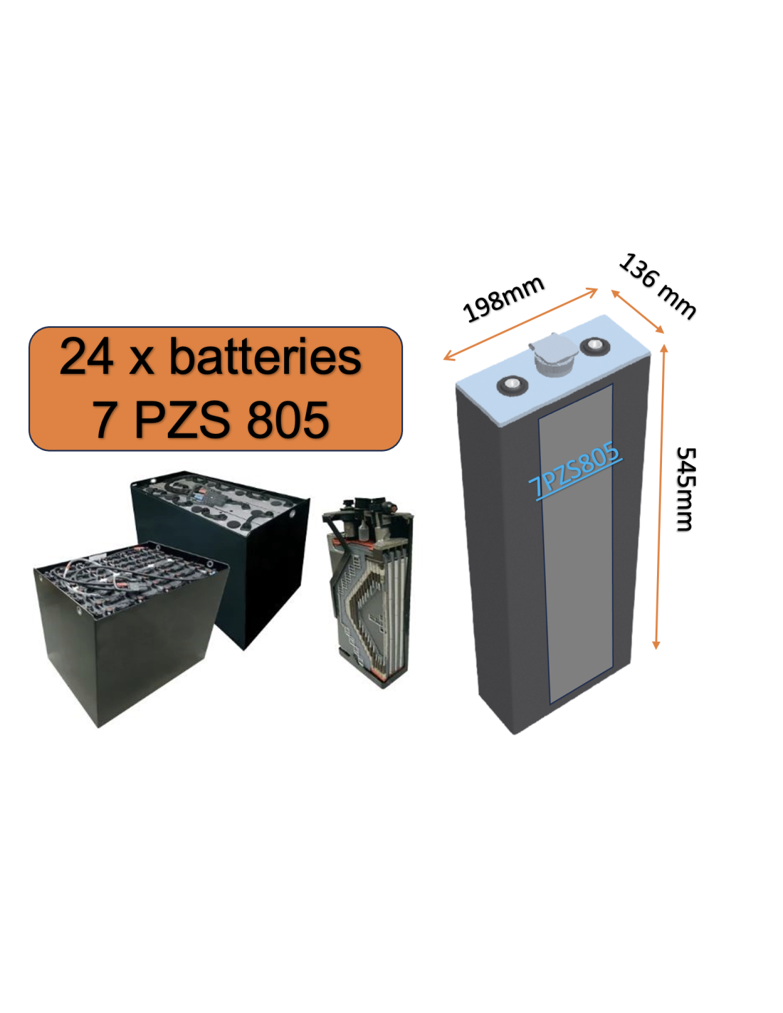 Batterie pour chariot élévateur, transpalette ou gerbeur électrique vendu à l'unité et en pack par 12 / 24 et plus avec un tarif dégressif.